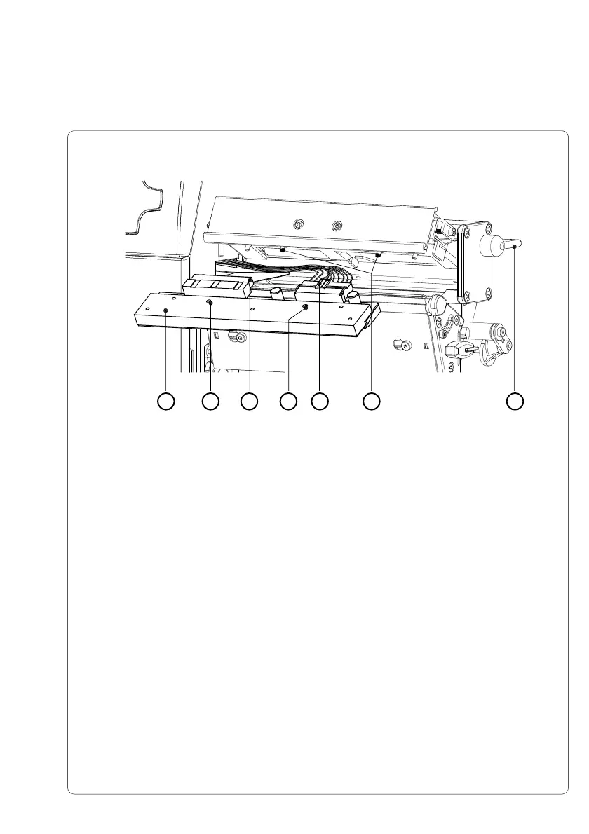 8. Place the printhead into the assembly and insert the holes (5) onto the