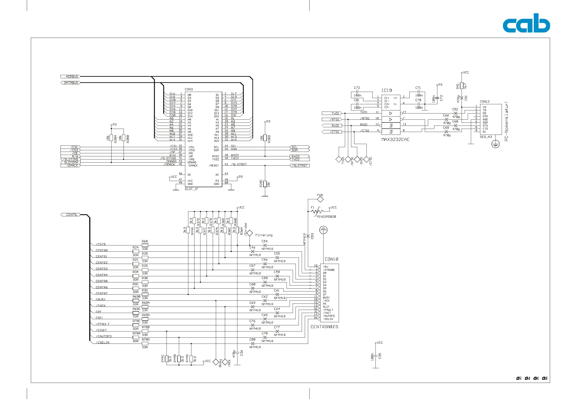 Appendix C: Circuit Diagram Mainboard A3 (PCB CPU) : Centronics, Interface Slot, RS-232