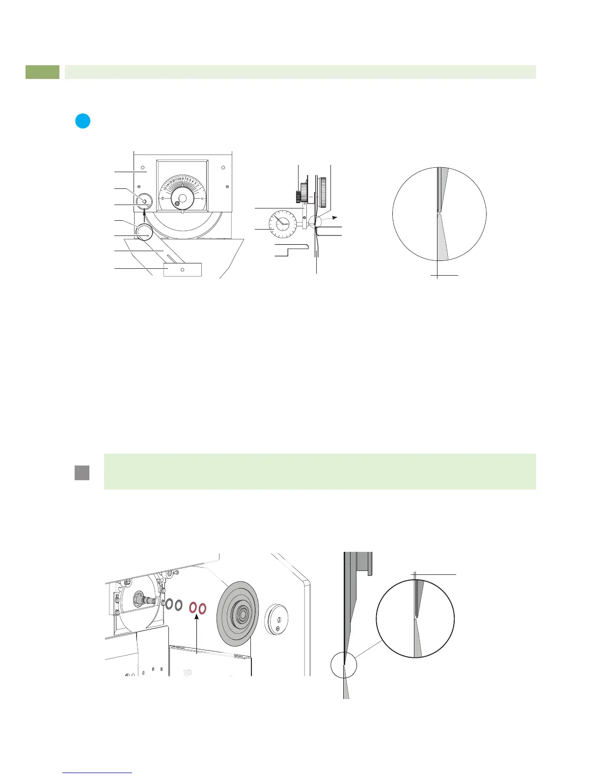 3. Swing the lever (6) upwards until the tip of the gauge feeler (7) presses onto the upper blade (9) at 2 mm of the edge of