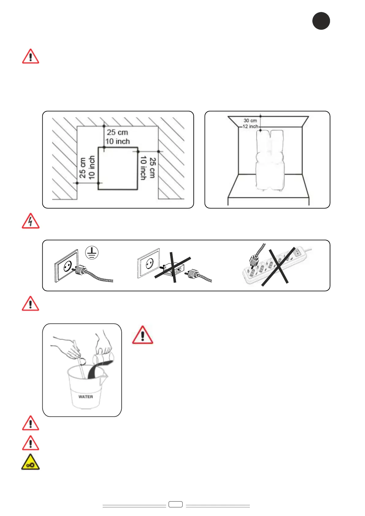 mínimo de 25 cm (10 inch) alrededor del perímetro de la máquina, para evitar el