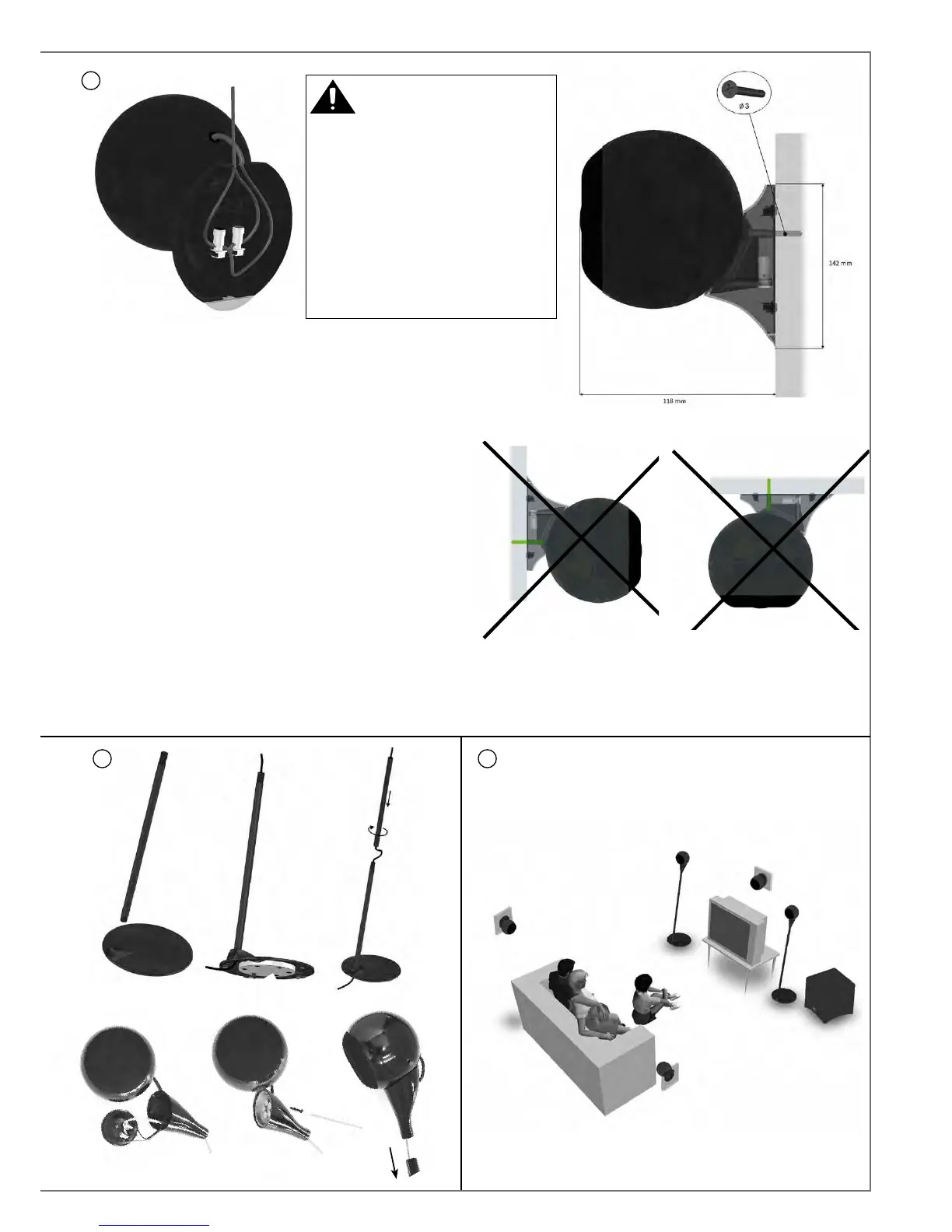 警告!在墙面装上底座时,仔细遵守以上第一个图形的定位。该系统勿