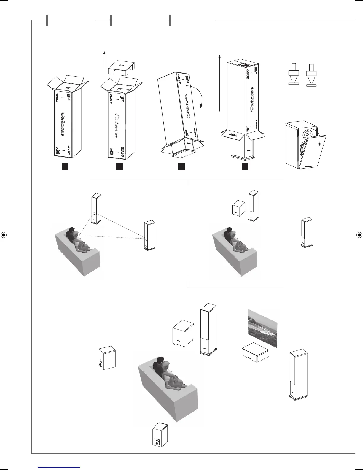 CABASSE MT32 - Speaker Installation and Placement; Unpacking Visual Guide; Room Placement Diagrams