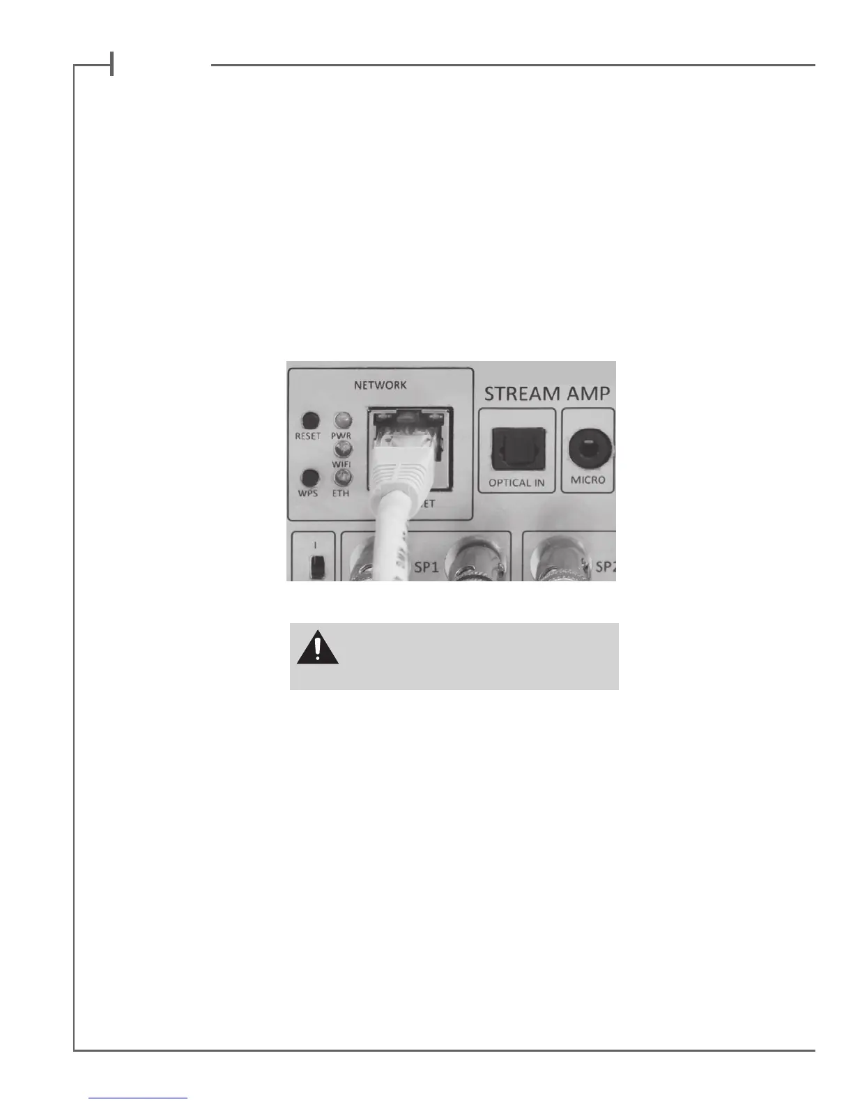 Use a RJ45 type cable to connect STREAM AMP to the domestic router.