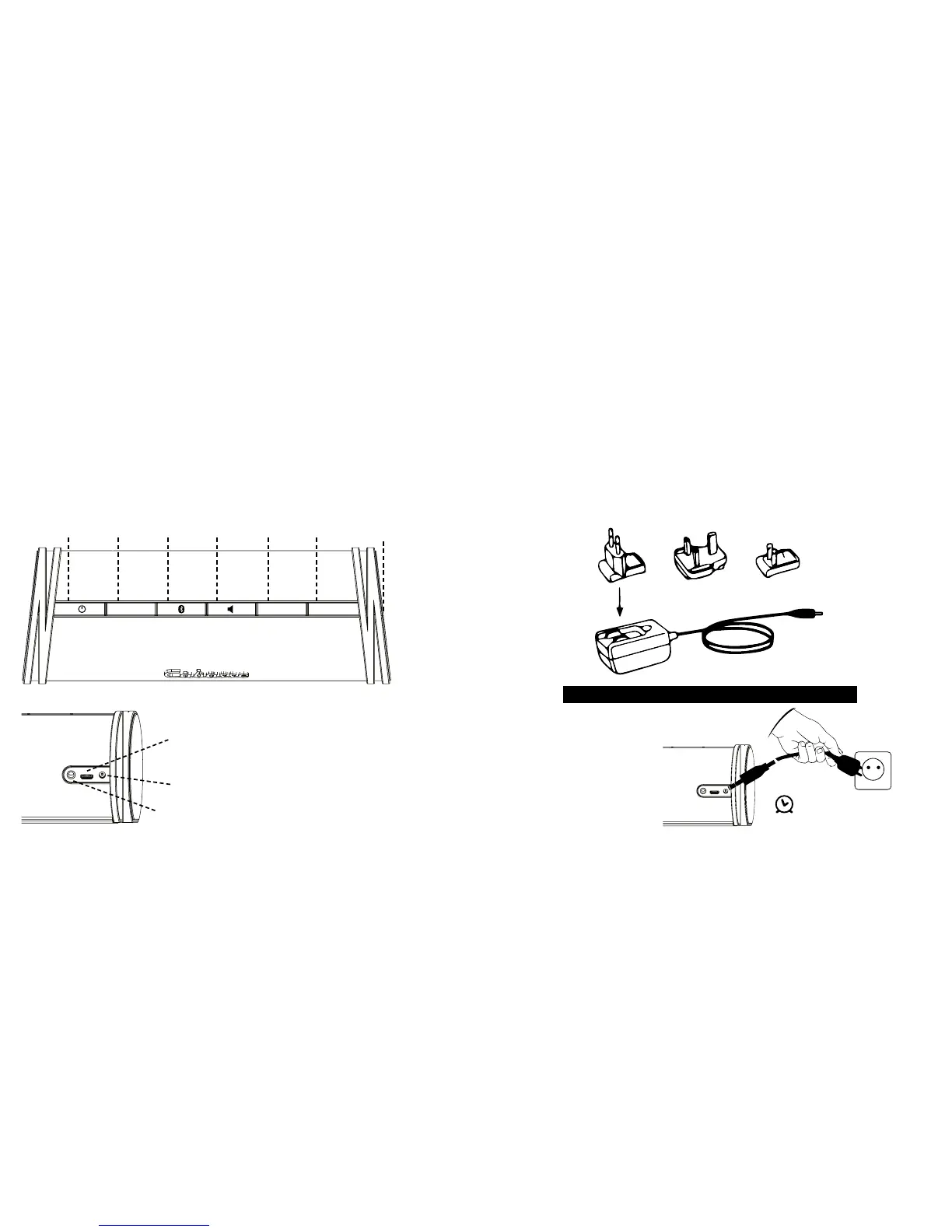 First check that the speaker, the power supply unit and the adaptor are all in the box. If any part is missing or damaged,