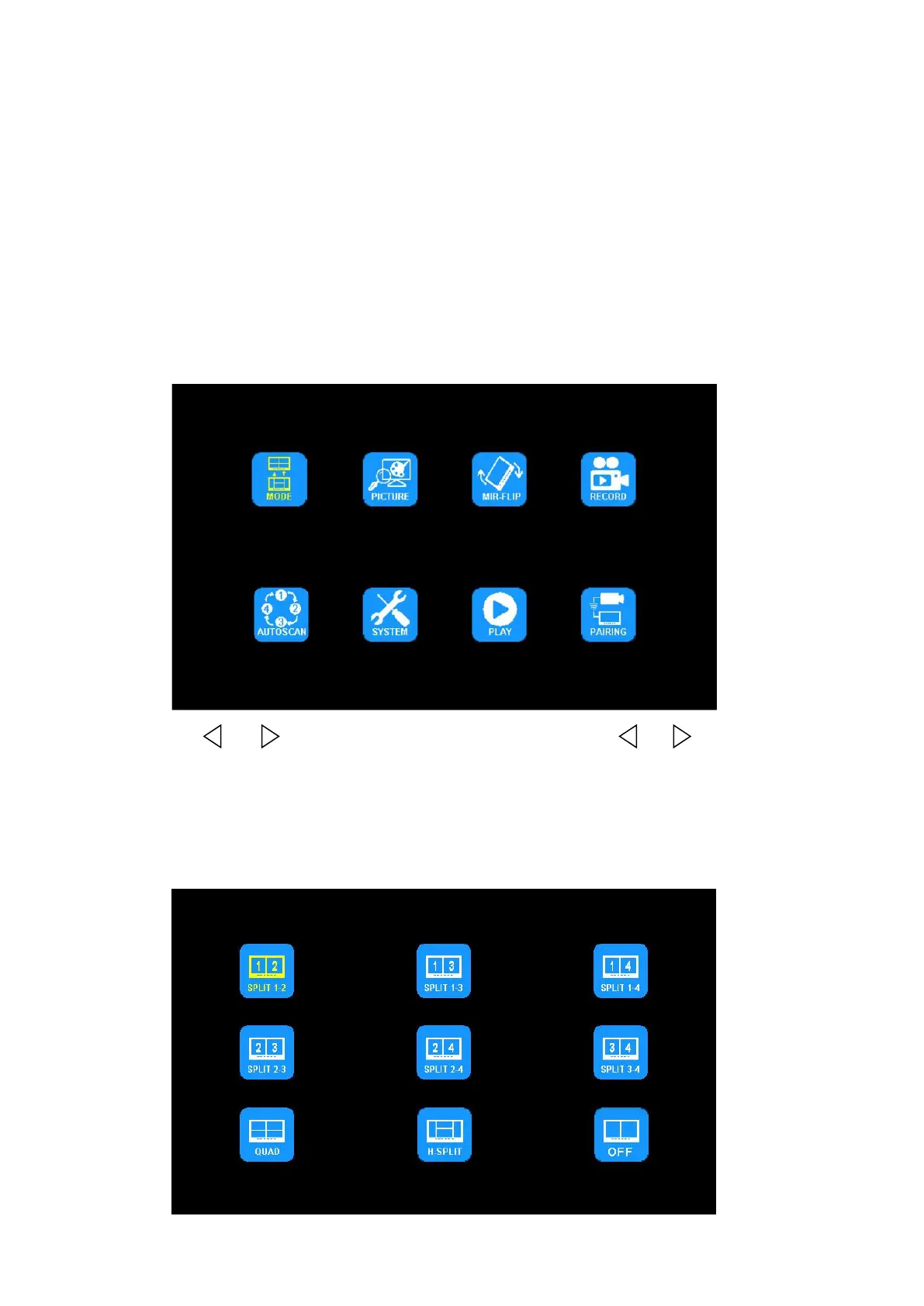SPLIT/QUAD mode. Select OFF to exit SPLIT/QUAD mode. Press MENU to return to