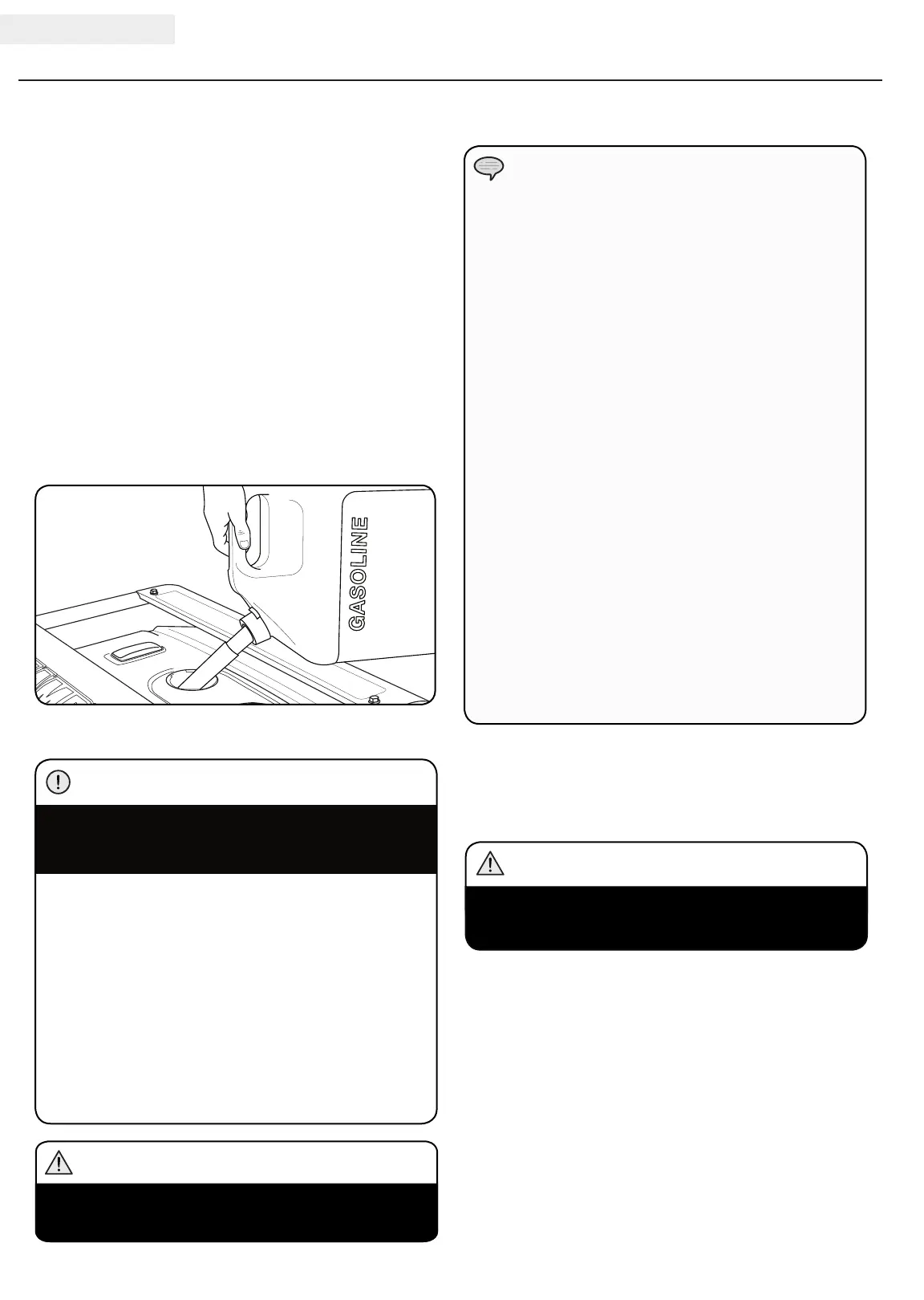 DO NOT fill fuel tank when the engine is running or hot.