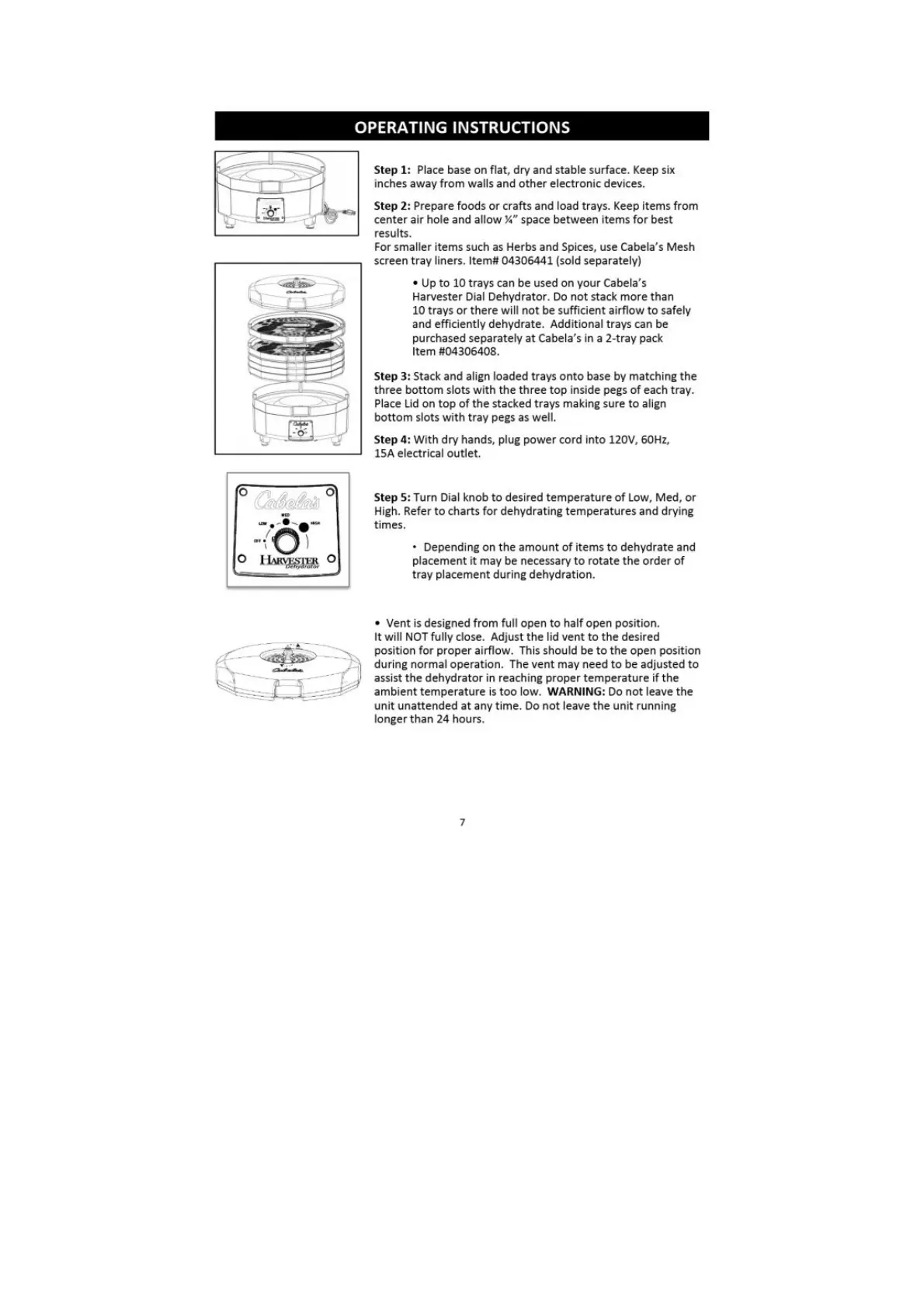 Cabela's 541365 - Operating Instructions; How to Operate the Dehydrator