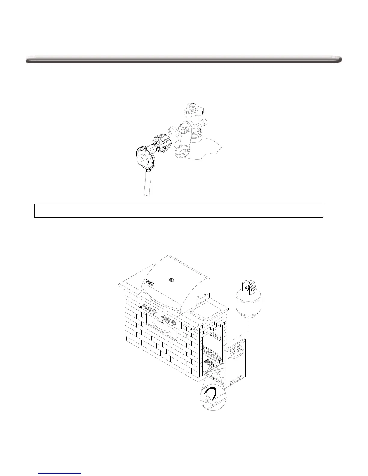 CAUTION! DO NOT USE ANY TOOL TO ATTACH REGULATOR / HOSE ASSEMBLY TO PROPANE TANK
