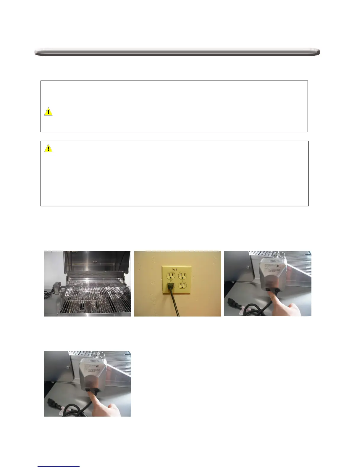 1. Place rotisserie motor onto the motor bracket, plug into a properly grounded outlet. Ensure