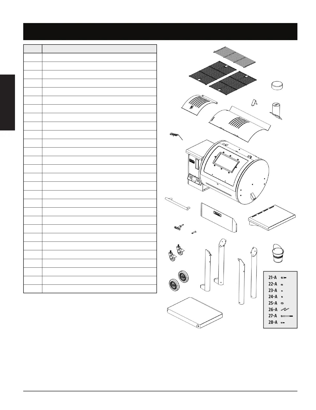NOTE: Due to ongoing product development, parts are subject to change