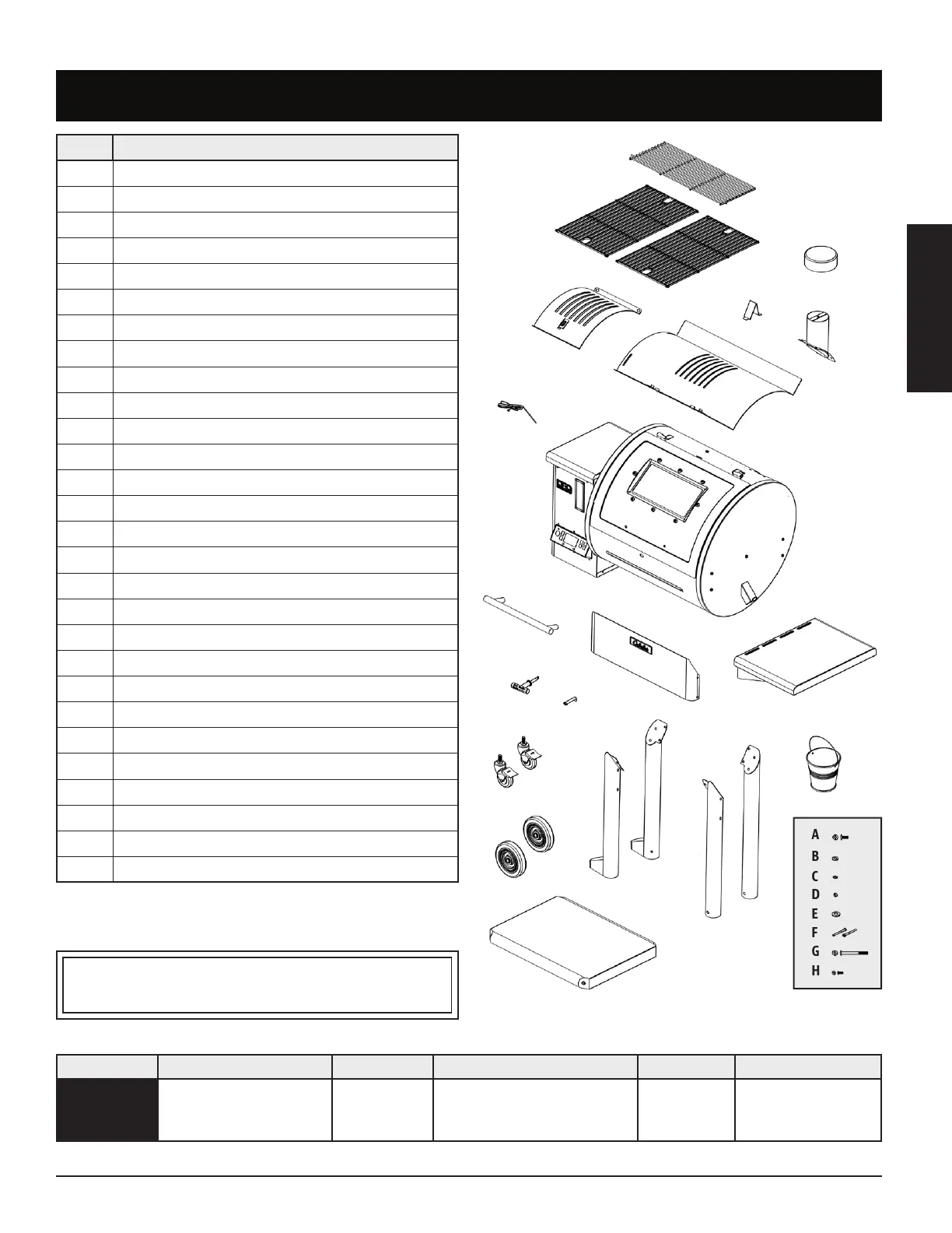 NOTE: Due to ongoing product development, parts are subject to change