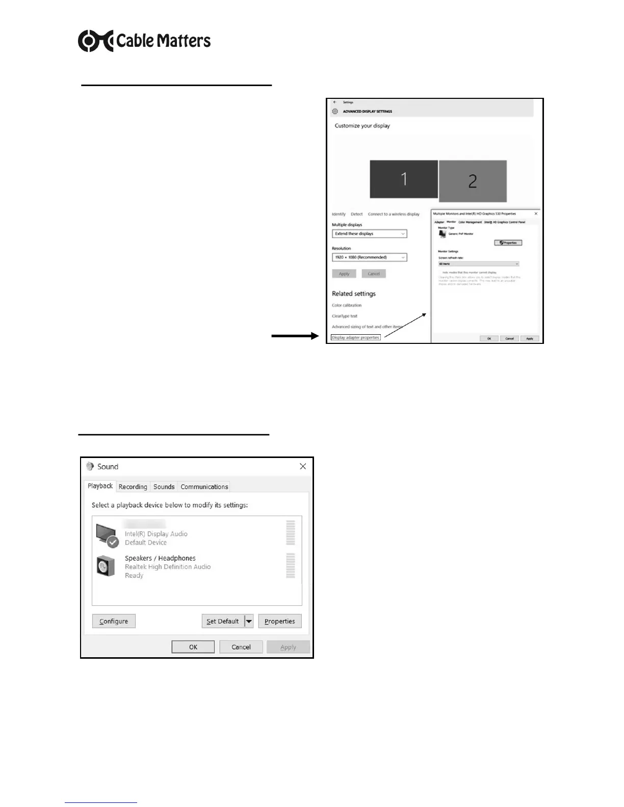 AUDIO SETTINGS IN WINDOWS (for a display with audio support)