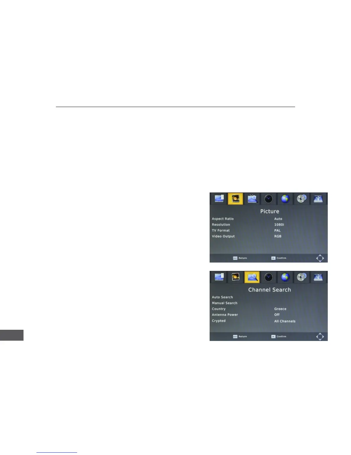 Full/16:9 Wide screen/Auto/16:9 Pillar Box/16:9 Pan&Scan).