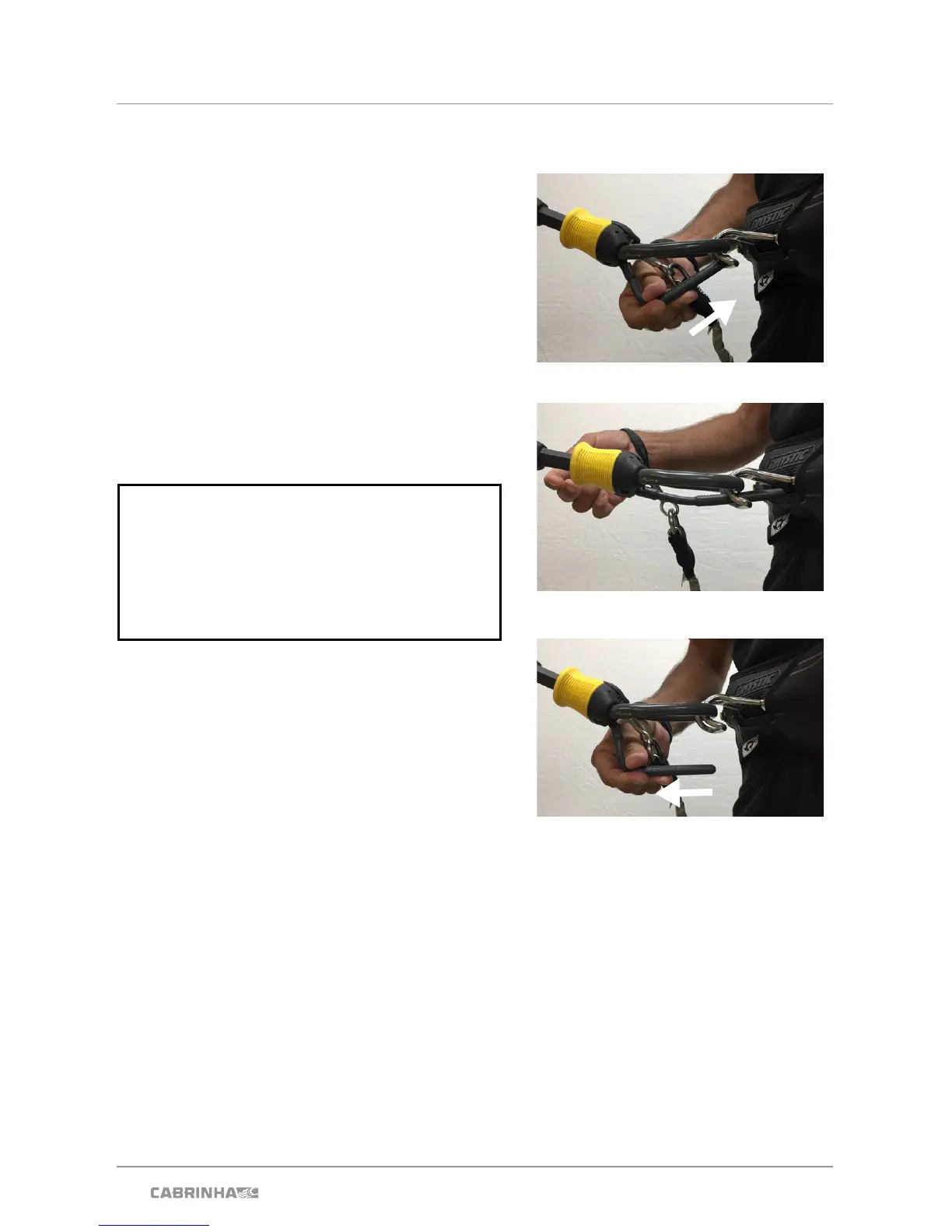 • Once hooked into the harness loop, only