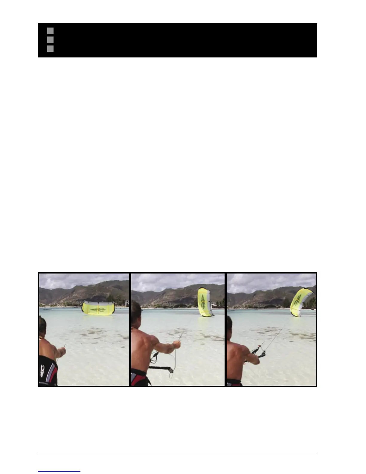 kite. Make sure your kite struts are properly inflated before entering the water.