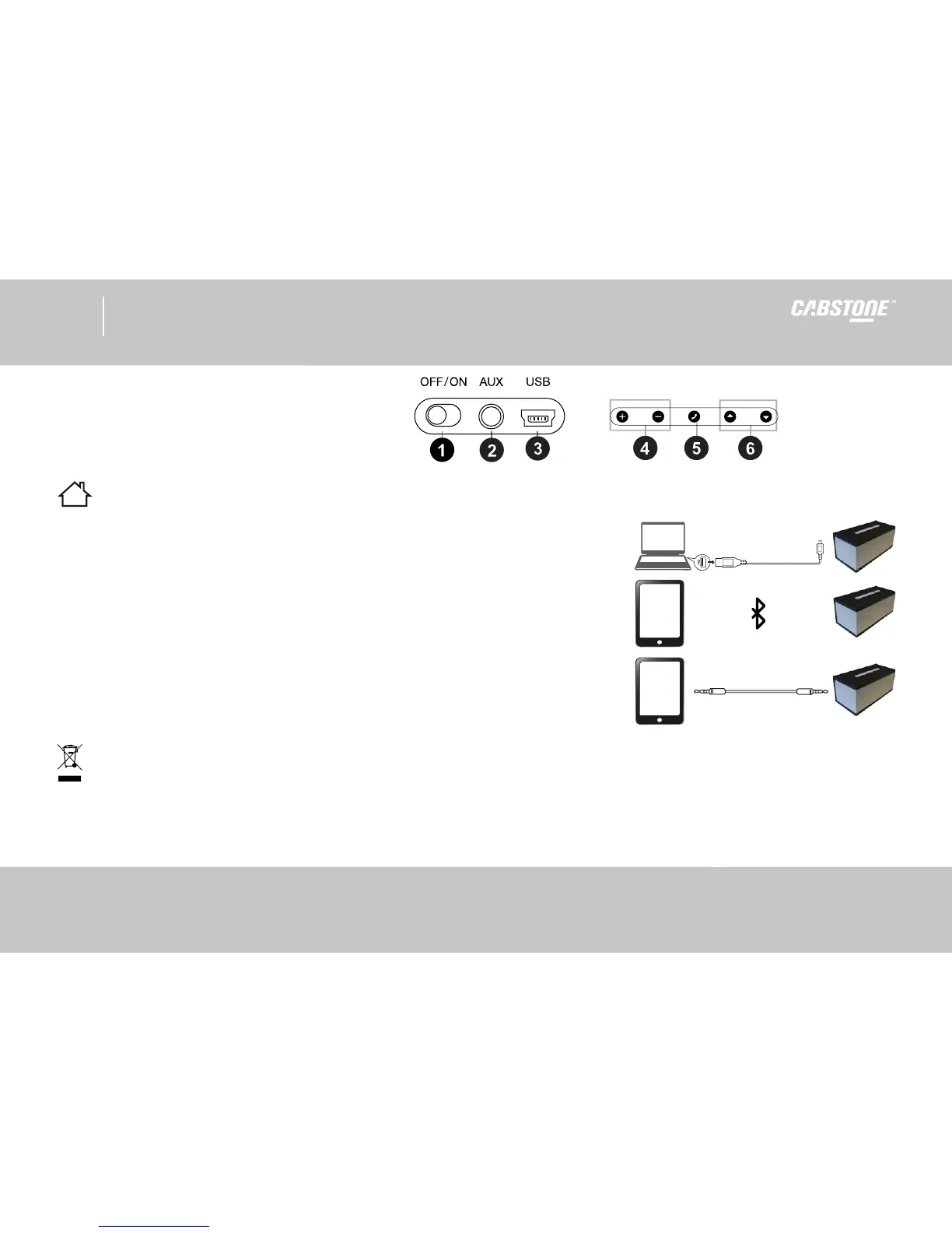 1开关的ON/OFF,2AUXIN-3.5毫米立体声插孔输入,