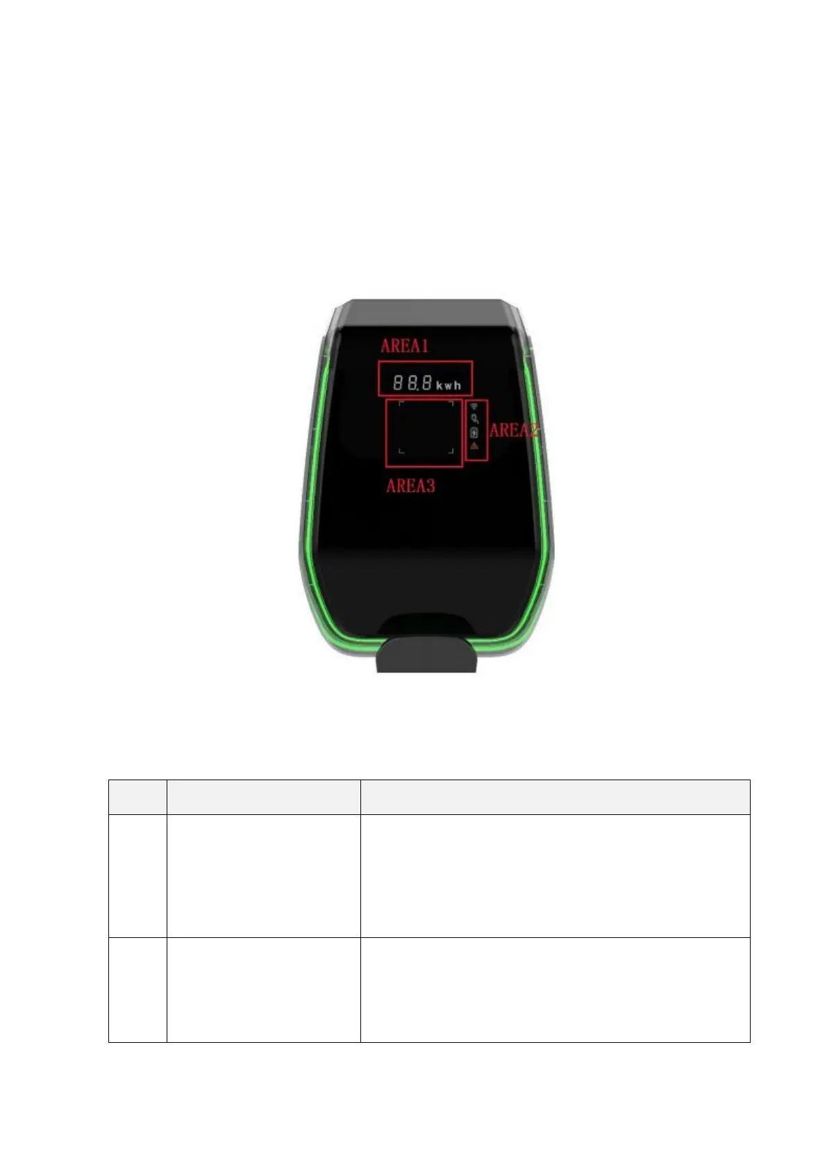 The charger has three display areas AREA1, AREA2, AREA3 on its front side