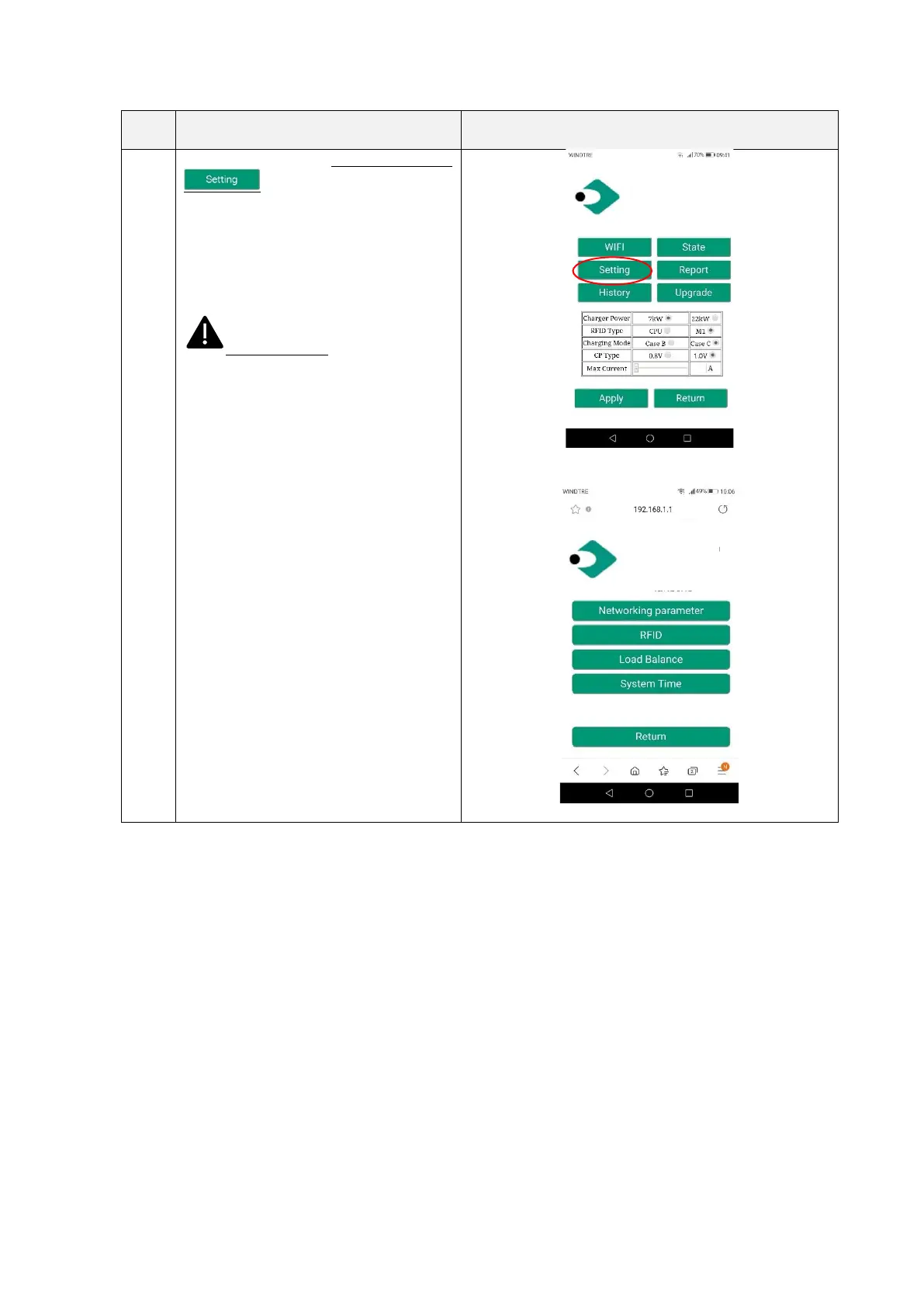 Clicking on the Setting” button