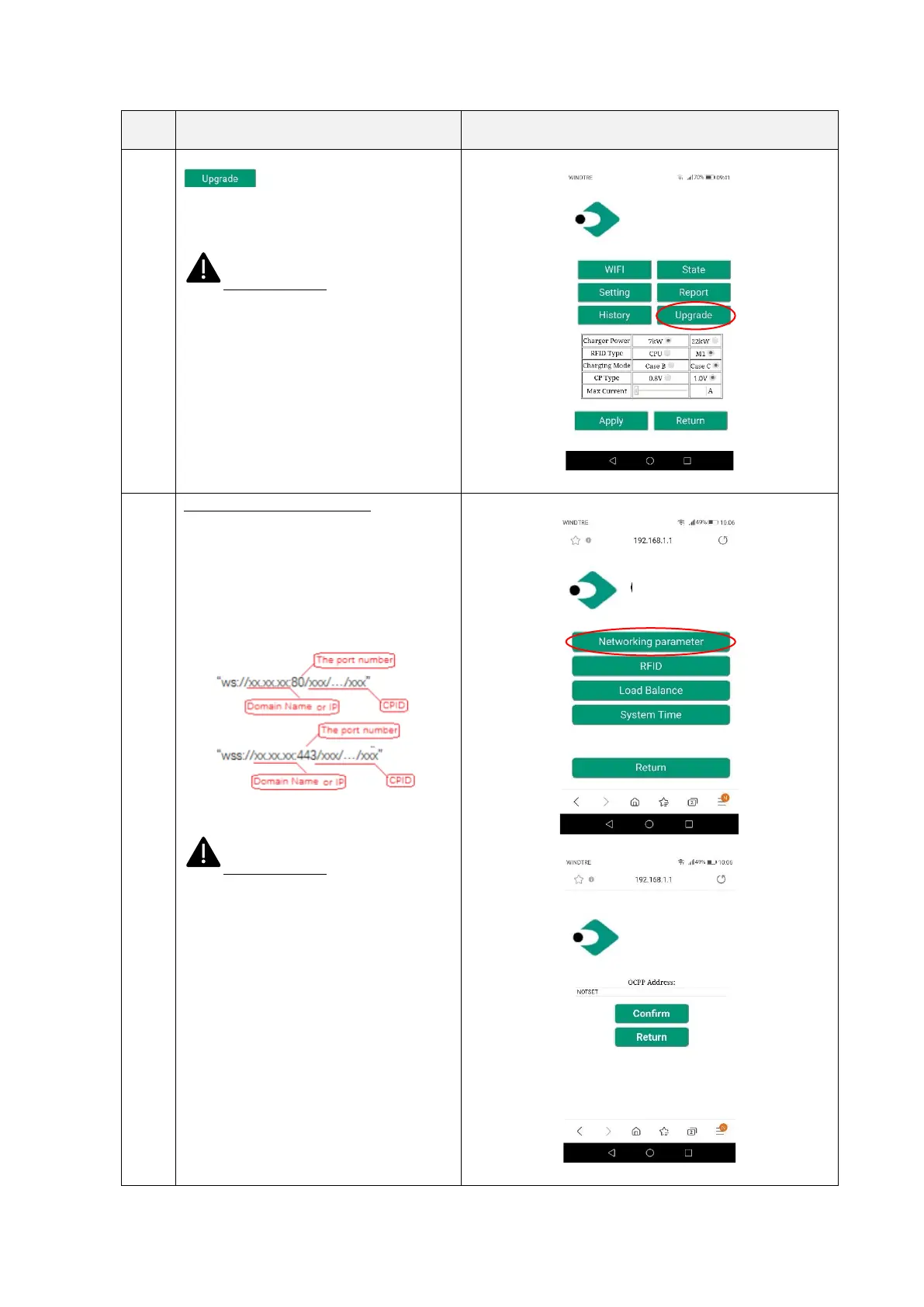 Settings for the OCPP server address to