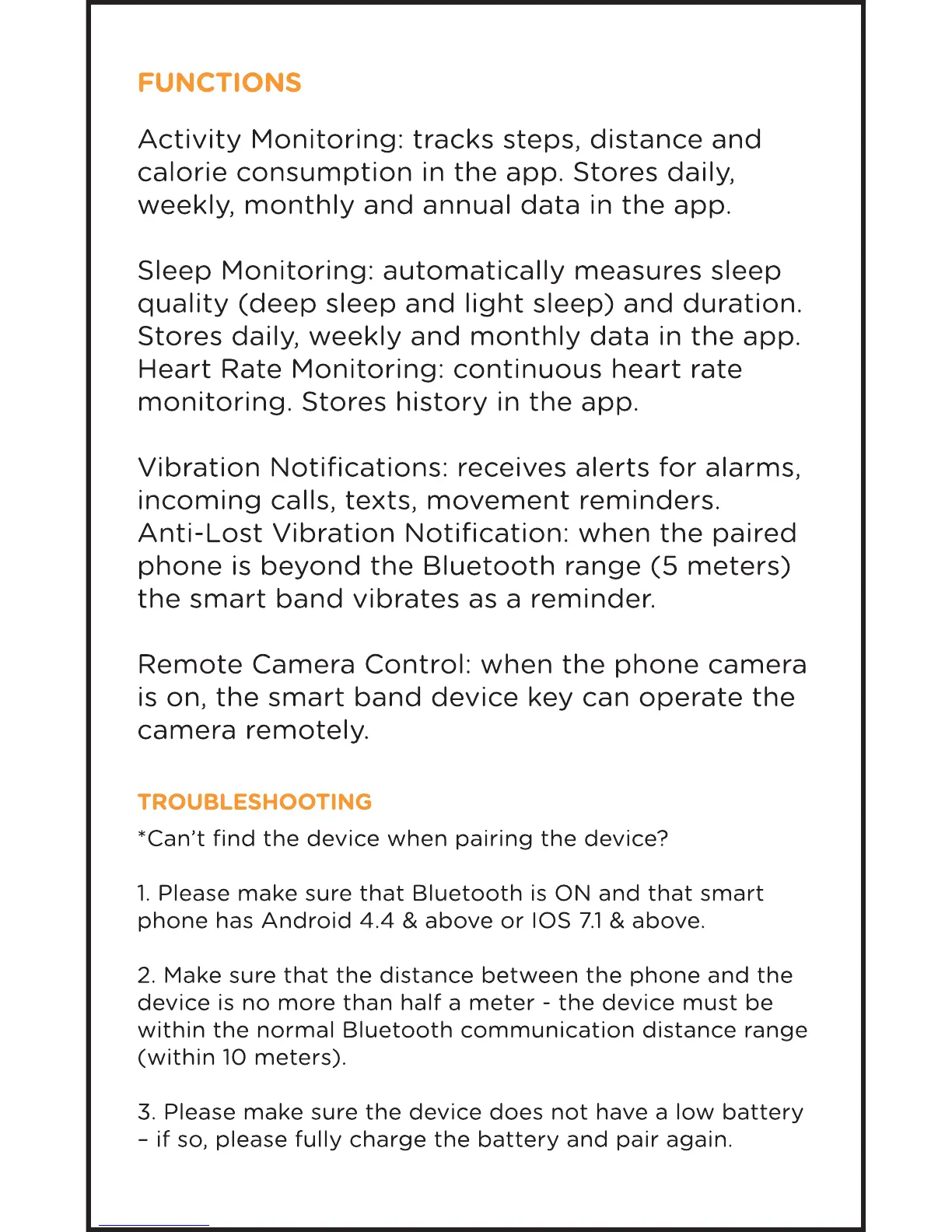 Cactus Activity Tracker - FUNCTIONS; TROUBLESHOOTING; Cant find the device when pairing the device?