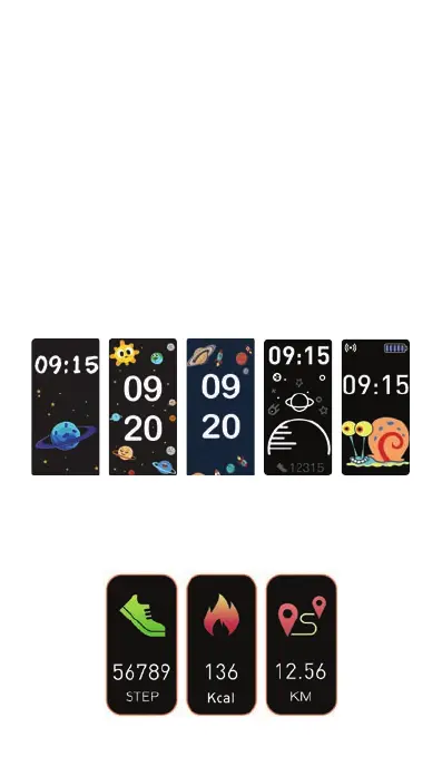 • The device records and displays the number of steps