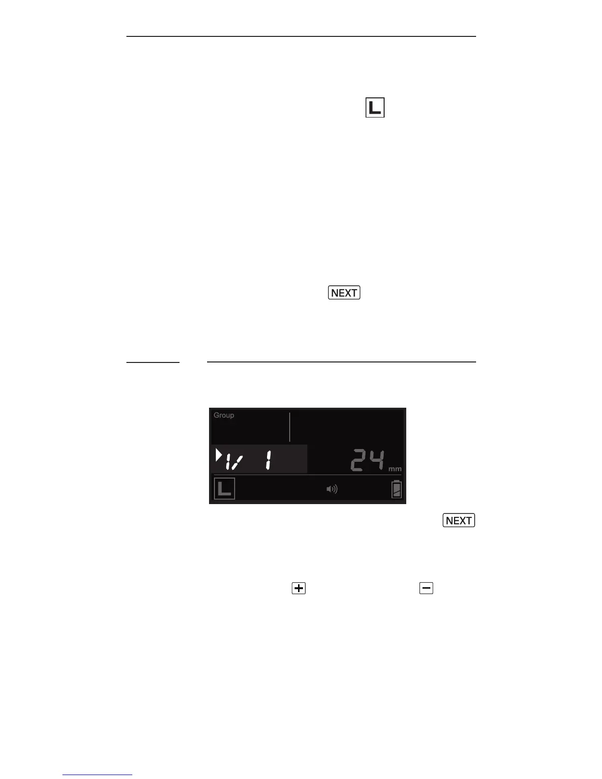 row). Press to increase or to