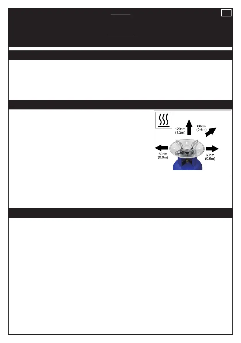 • Ensure the appliance is used away from ammable materials. Minimum safe distances are: above the appliance 1.2m. At the rear and