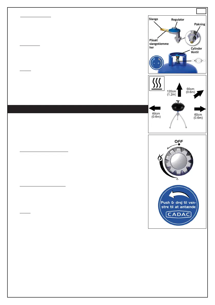 • Hvis der er en lækage på dit apparat (gaslugt), slukkes for cylinderventilen og den bringes