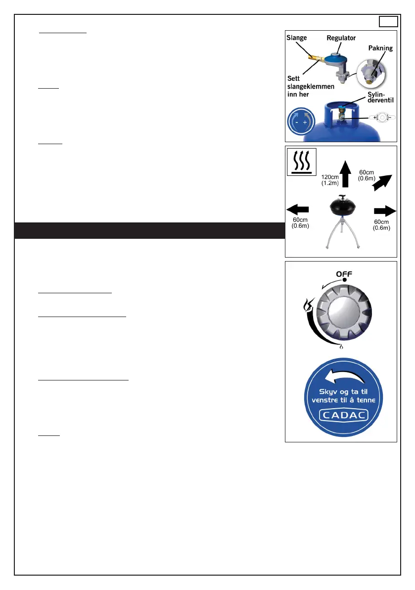 • Dersom en gasslekkasje vedvarer, returnerer du produktet til din CADAC-forhandler for