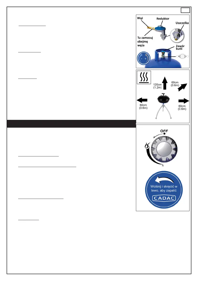 • Pouruchomieniuurządzeniaintensywnośćpłomieniamożnaregulowaćzapomocąpokrętłazaworu:wlewo,abyzmniejszyćpłomień,lubw