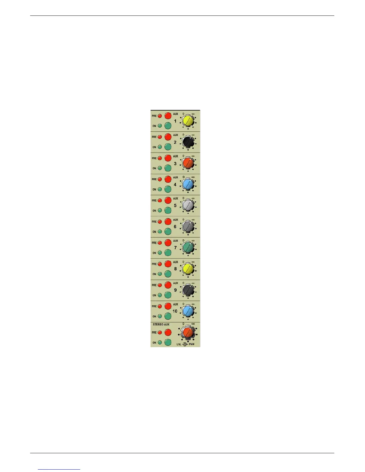 Ten mono Auxiliary Sends with individual level controls.