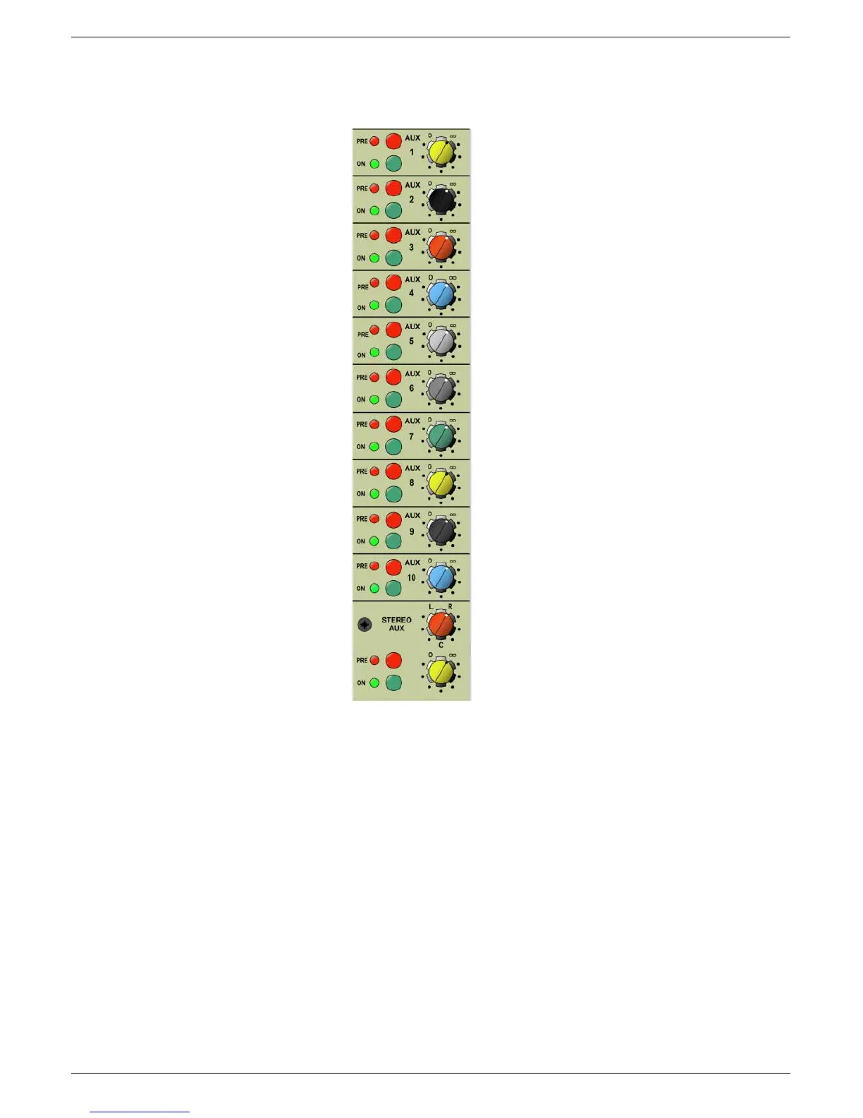 There are ten mono Auxiliary Sends with individual level controls and they can be