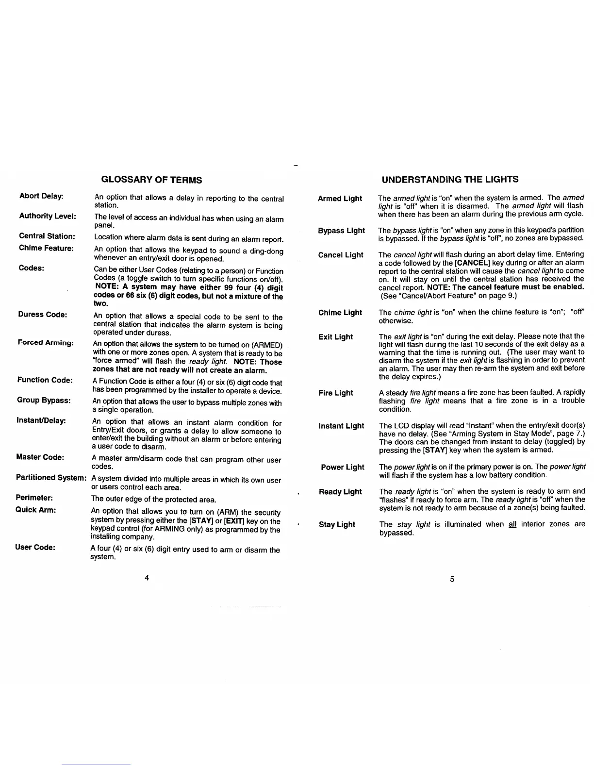 CADDX NX-148 - Understanding the Lights
