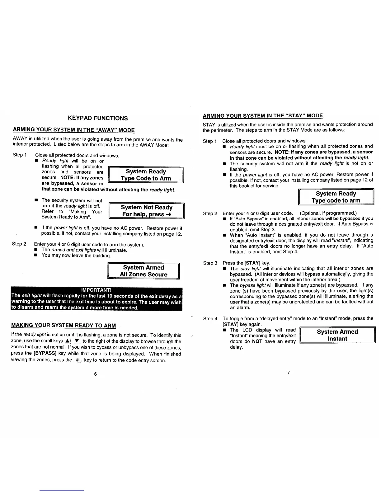 CADDX NX-148 - Arming System Modes; Arming in the Away Mode; Arming in the Stay Mode