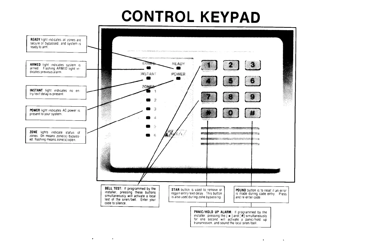 CADDX Ranger 8000 - Control Keypad; READY Light; ARMED Light; INSTANT Light