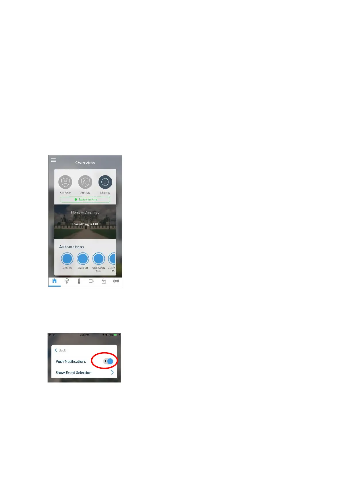 • Check you can see the Arm/Disarm screen of the device you wish to receive