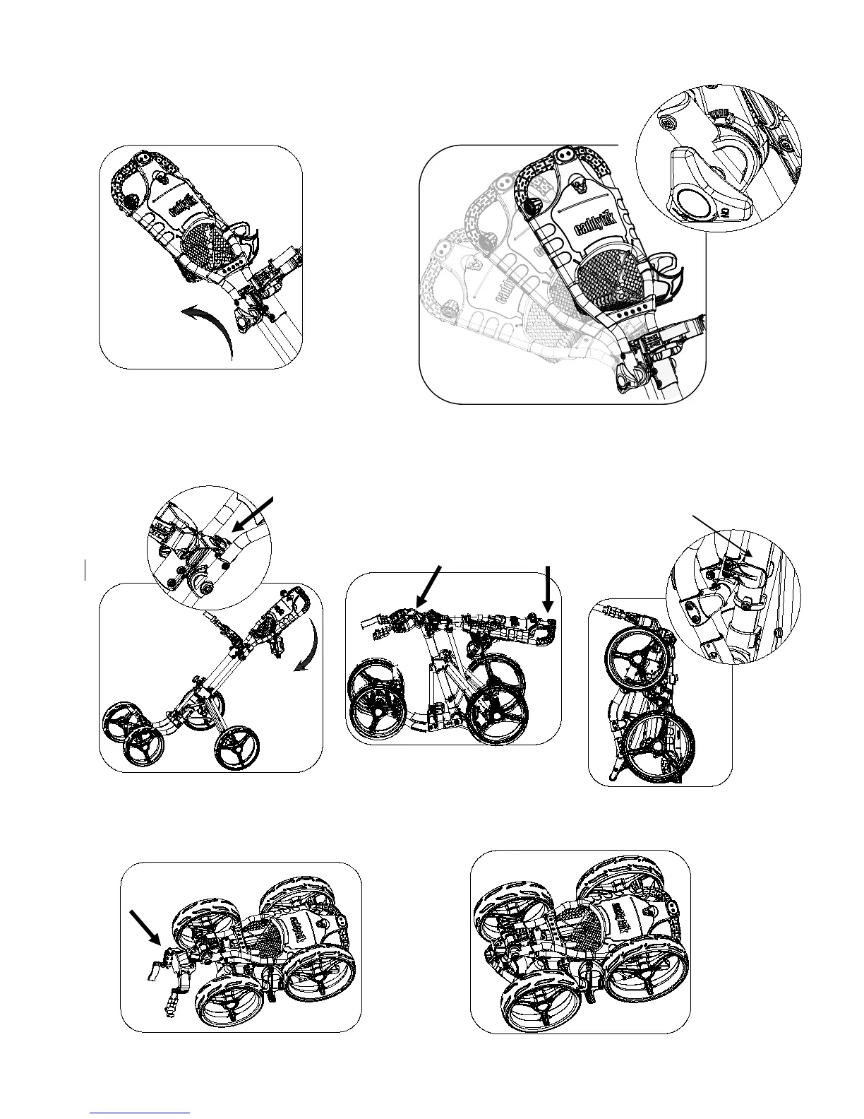 shown in Fig. 7 and Fig. 8 to fold the cart till the main frame clicks
