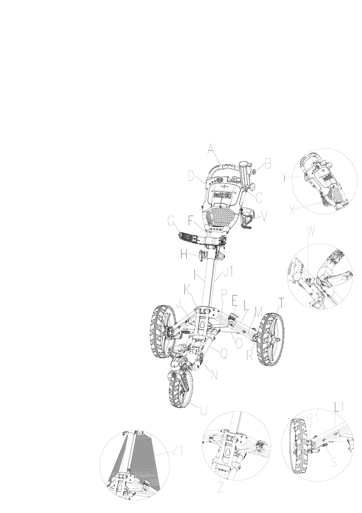 Y: Lever for locking/unlocking front wheel swivel