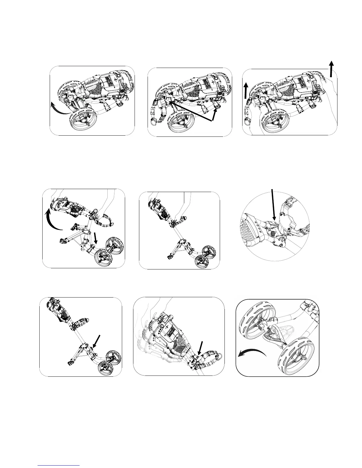 Fully extend front wheel frame and lock the buckle as in Fig. 7.