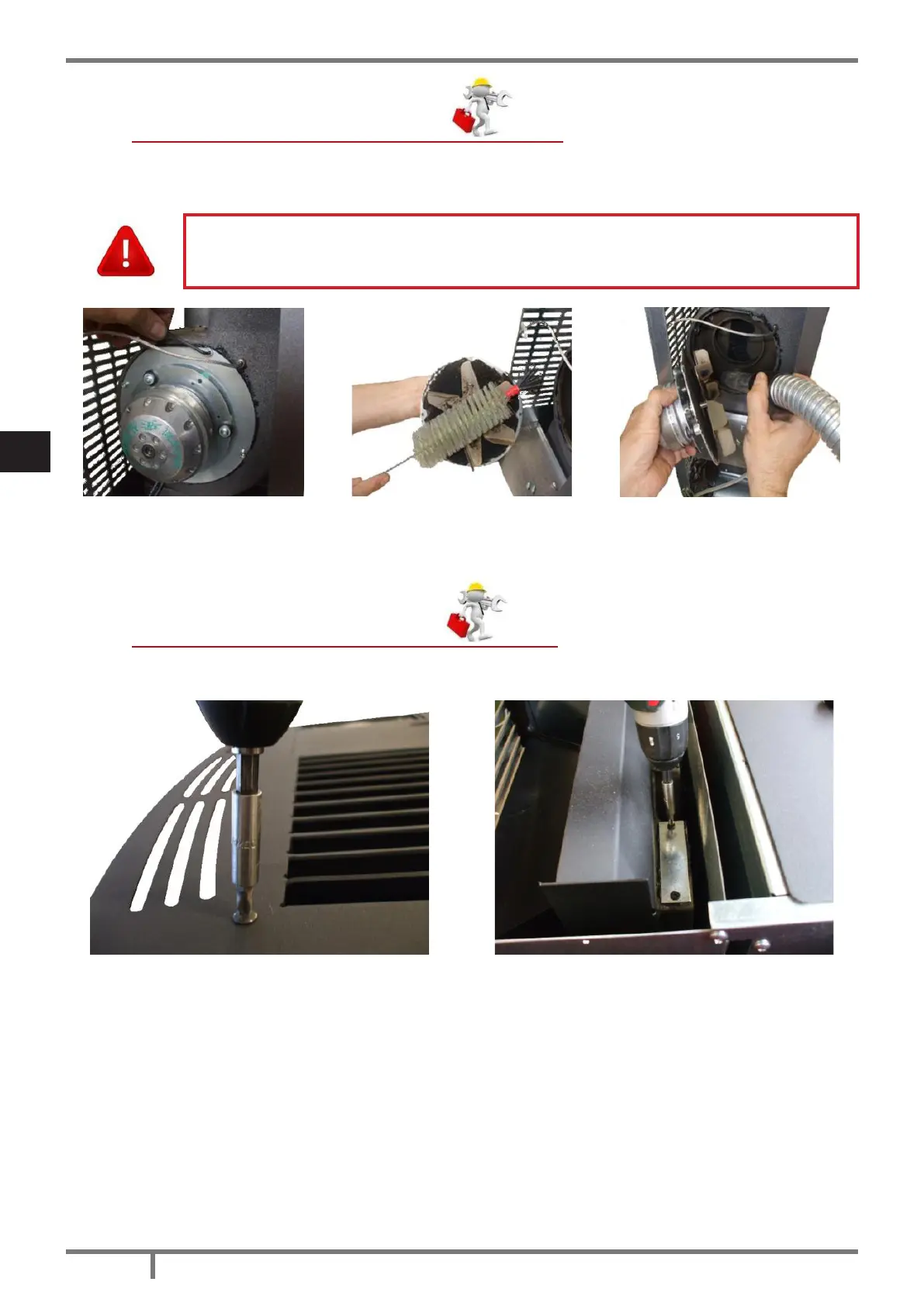 Limpar anualmente o aspirador de fumos de cinzas ou pó os quais irão causar um desequilíbrio das pás e