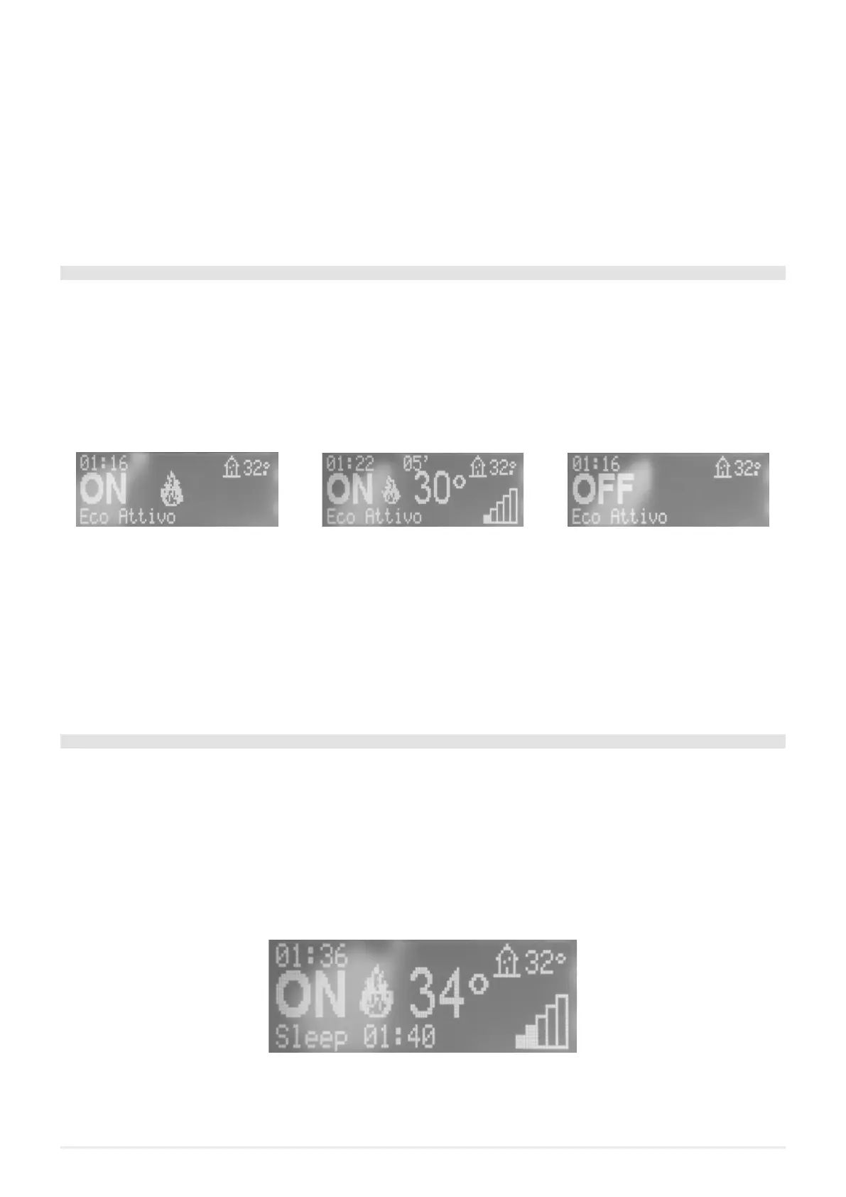 When the switch-off procedure begins, the panel shows: Off - Active Eco - small flashing flame (see Fig. 12).