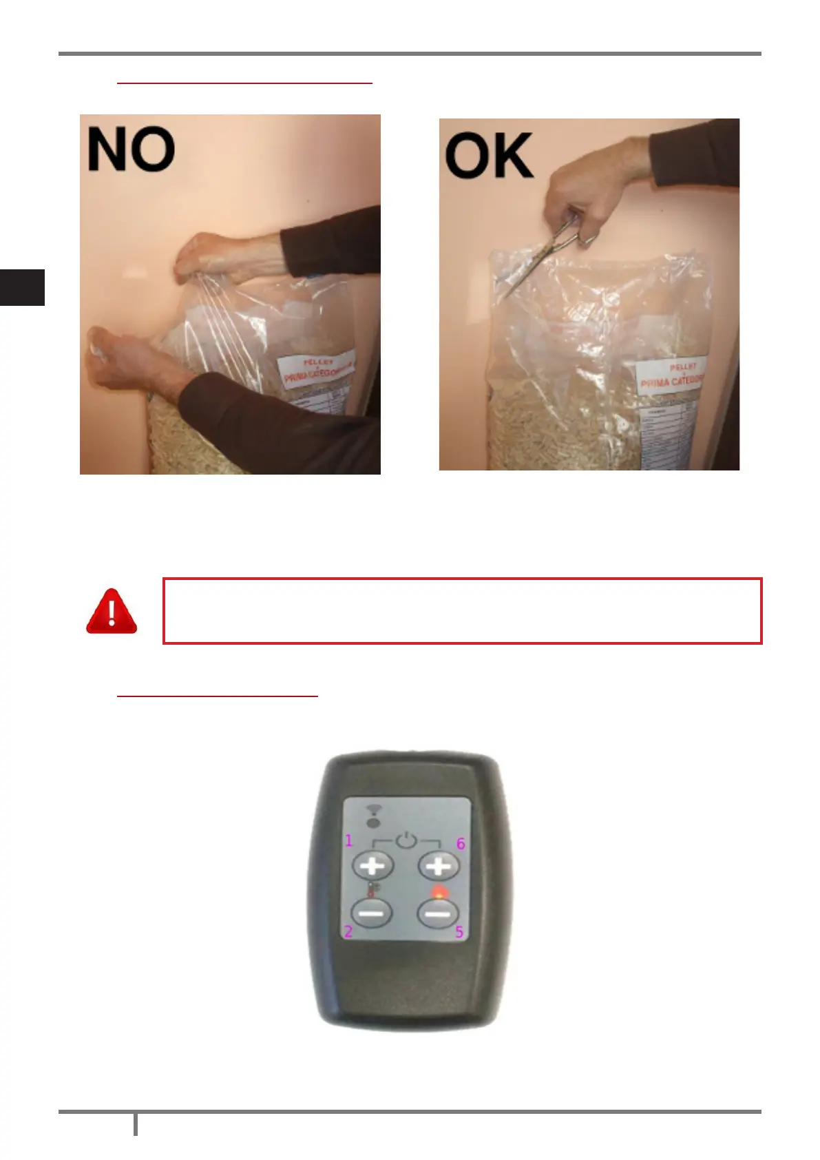 Fig. 23 - Abertura errónea del saco del pellets Fig. 24 - Abertura correcta del saco del pellets