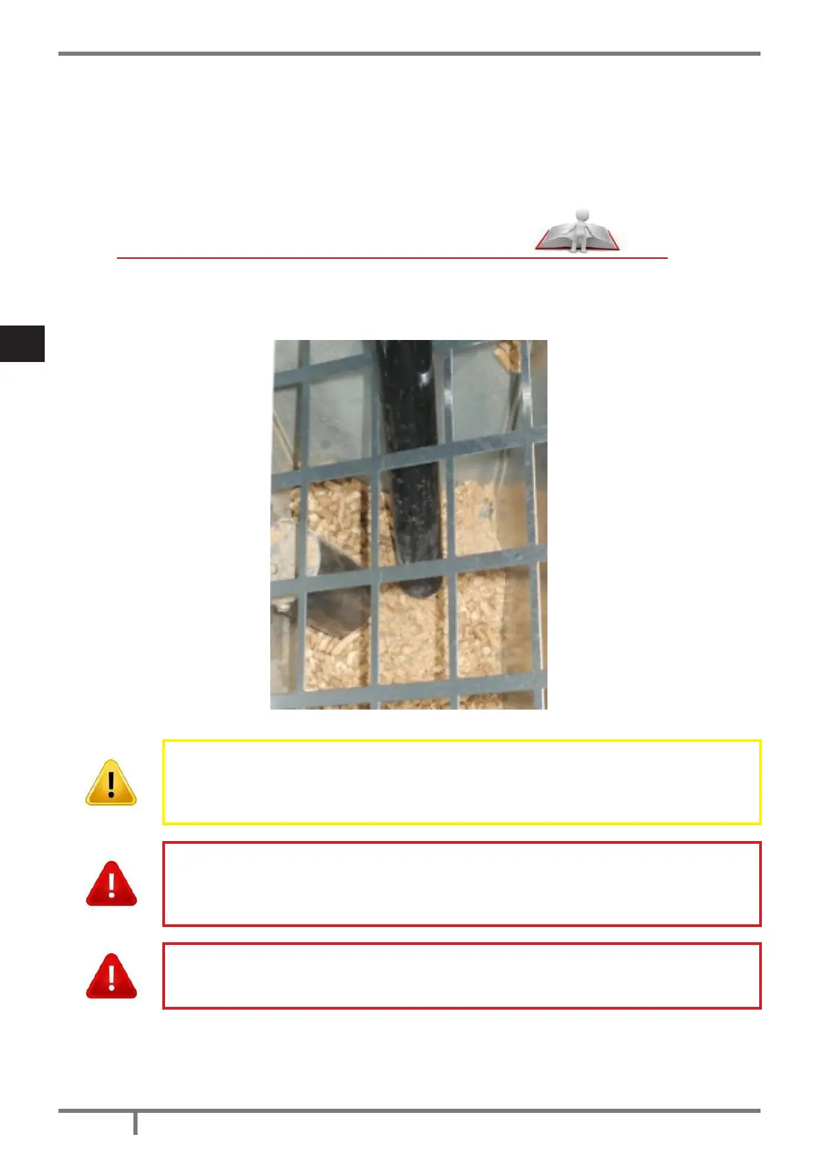 Bij iedere bijvulling met pellets moet de eventuele aanwezigheid van poeder/zaagsel of ander afval op de