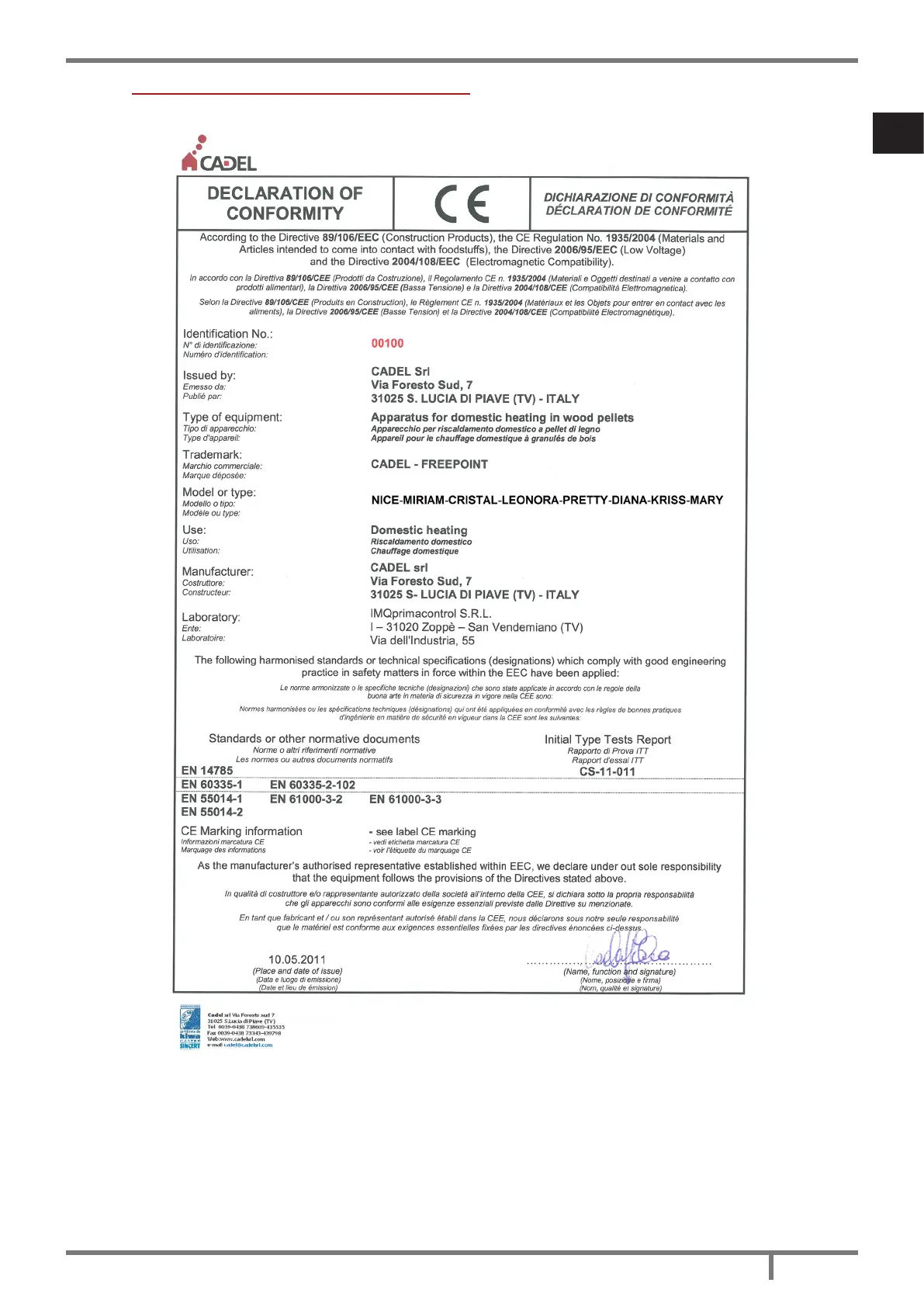Cadel nice - Dichiarazione DI Conformità