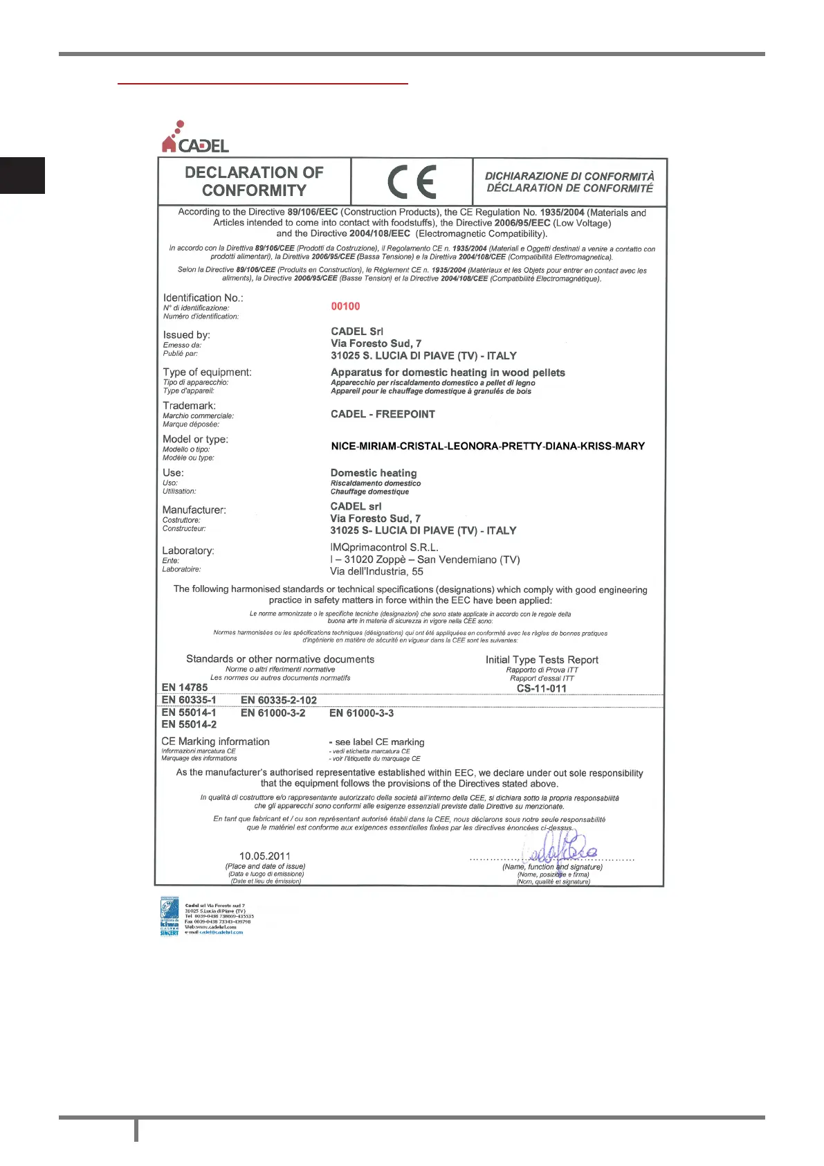 Cadel nice - Declaration of Conformity