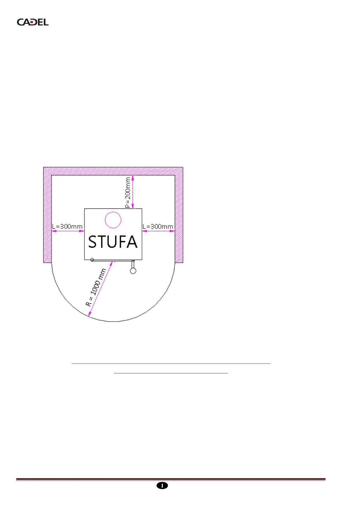 Si consiglia di installare la stufa staccata da eventuali muri e/o mobili, con un giro d’aria minimo di