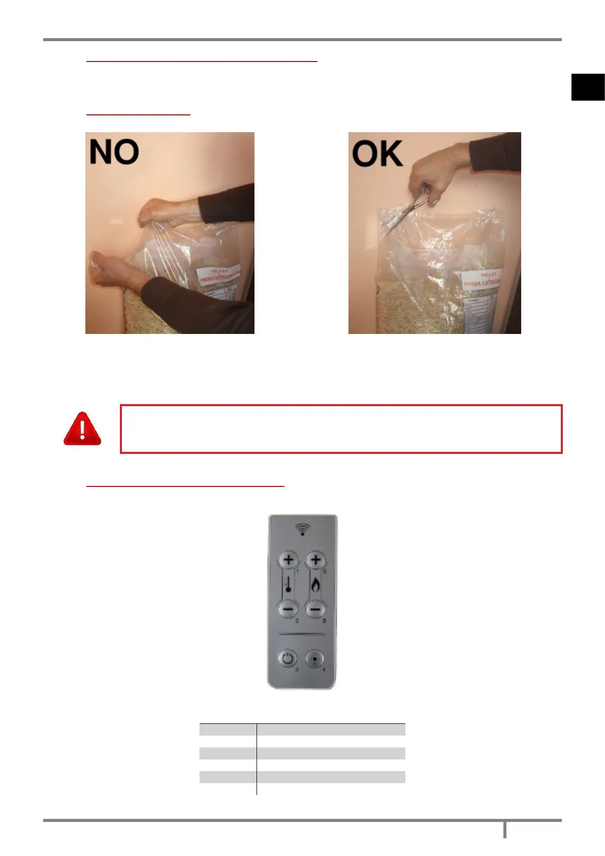 • Do not empty the hopper with remaining fuels (unburnt pellet) from the burning pot coming from ignition