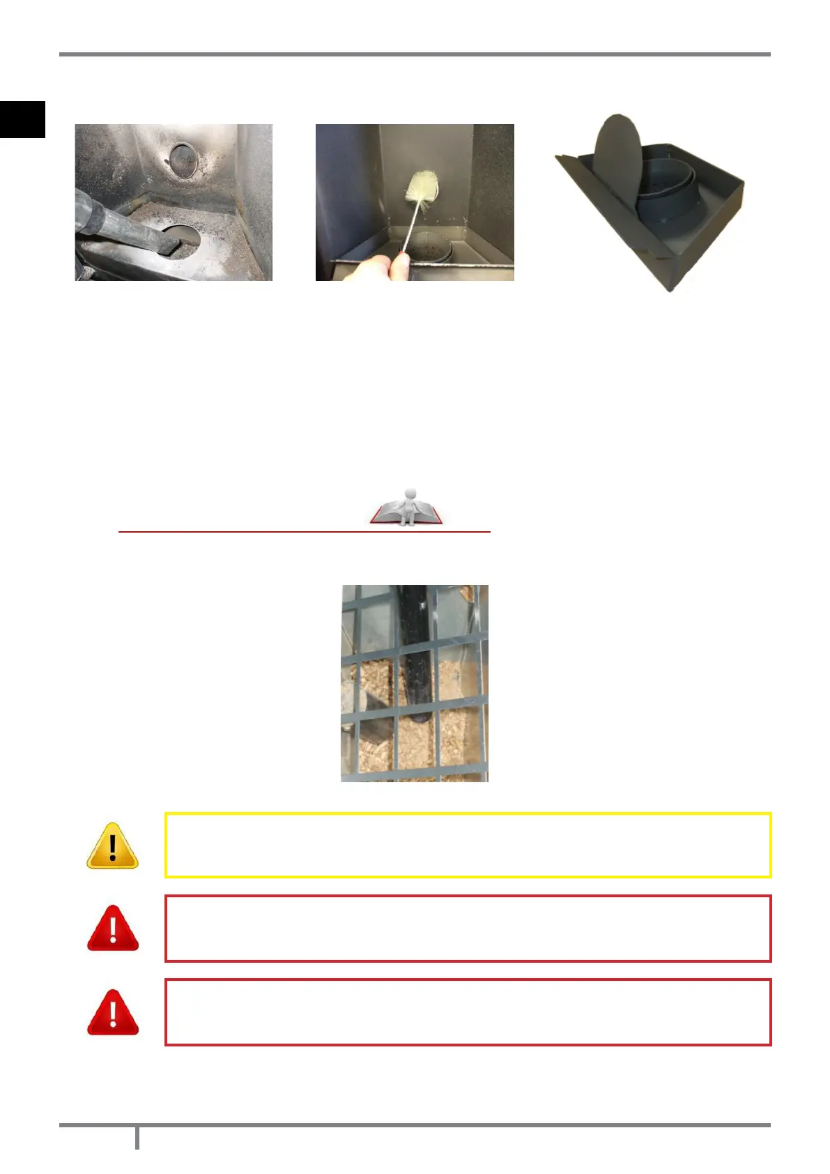 • Clean also the hole for pellet drop with a brush (see Fig. 28 page 24).