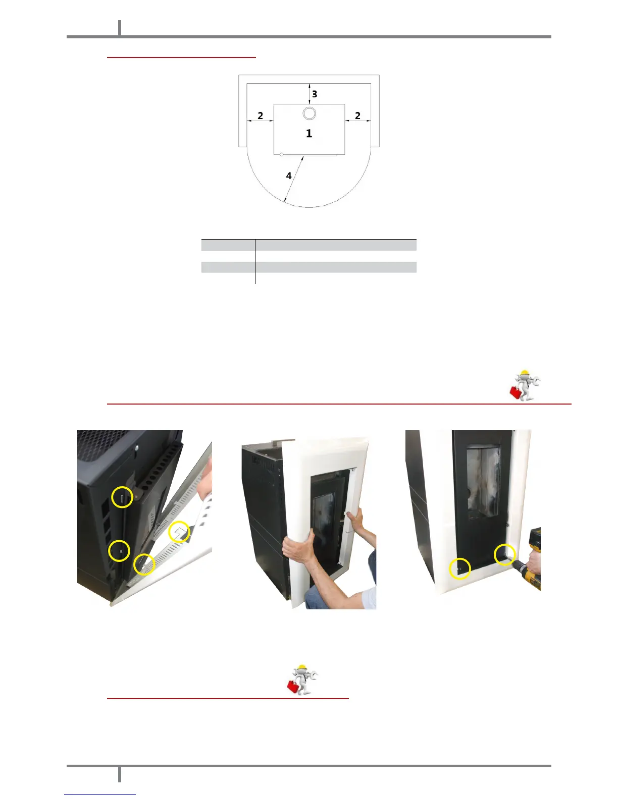 It is obligatory to install the stove away from walls and/or pieces of furniture, with a minimum air ow of 300 mm