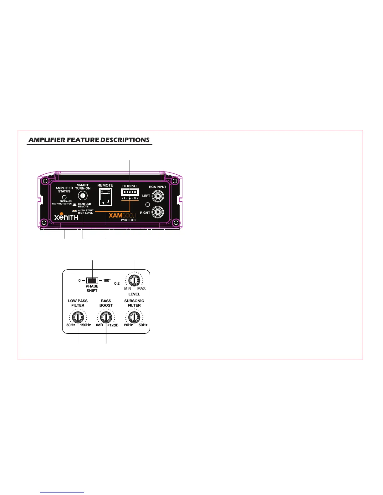 1.Line Input RCA Jacks: These inputs are for signal cables